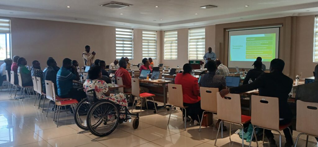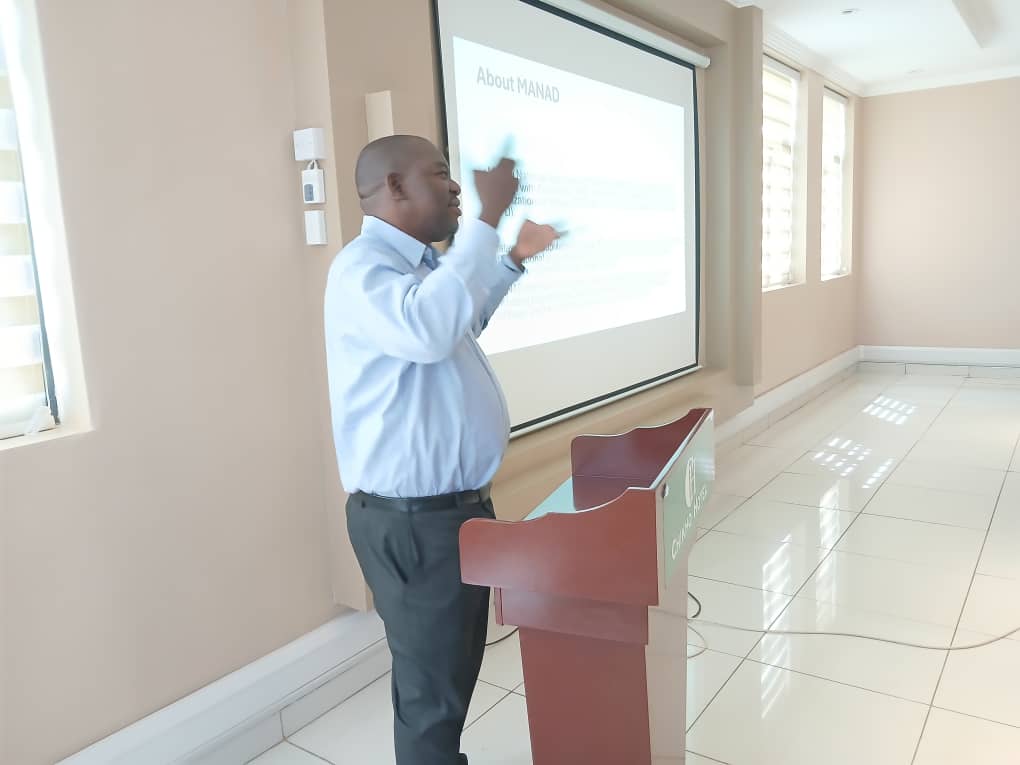 The picture showing Mr. Kufakwina during his presentation at the “ABLE TO THRIVE” Project quarterly review workshop at Chikho Hotel in Mponela.